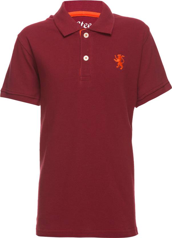 Boys Solid Cotton Blend Regular T Shirt (Maroon, Pack of 1)