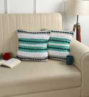 DKDECORATIVE Cotton Cushions Cover (40 cm*40 cm, Pack of 2, Blue, Yellow)