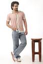 Men Solid Stylised Neck Cotton Blend Pink T-Shirt