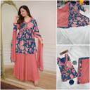 New Collection printed engagement dress date night winter wedding embroidary office casual designer indian bollywood kurta pant set,kurti pant duppata set, Diwali fastival suit flowers Embroidary work silk panjabi suit womens kurta with printed dupatta and pant 2024-25 (Kurti,Trouser,Duppata)