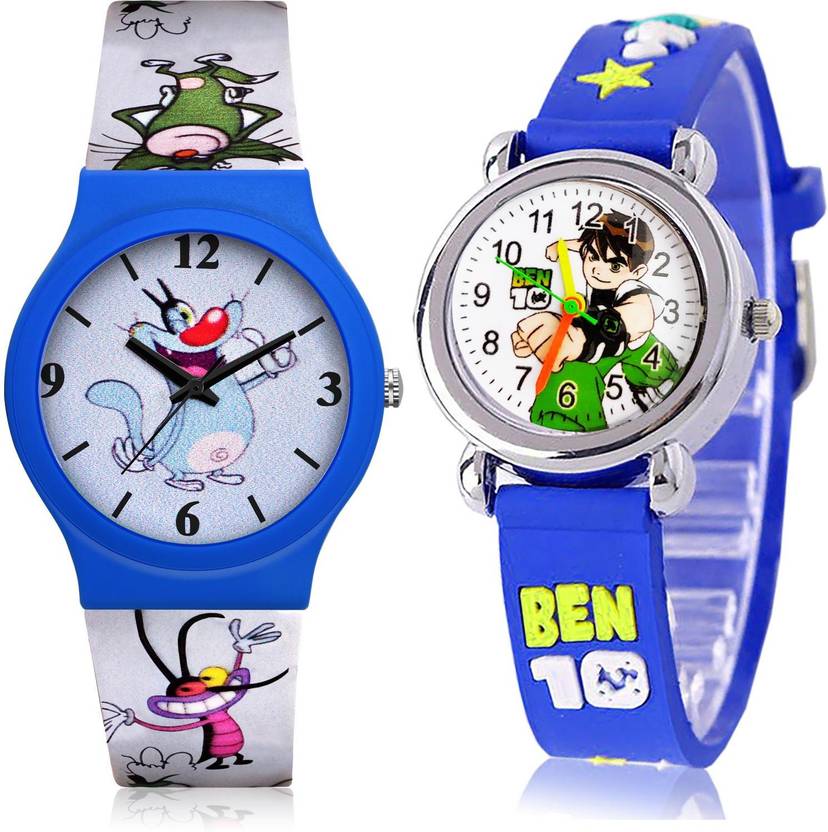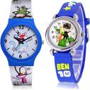 Dial Colour : Blue And White ; Band Colour : Blue ; Case Shape : Round ; Band Material : Plastic ; Case Diameter : 36 And 29 mm ; DMAGNATON Classical Royal casual and ben 10 kids Blue Colour Analog Plastic Belt 2 Watch Combo For Boys - CM731-GC88