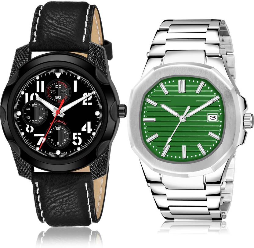 Dial Colour : Black And Green ; Band Colour : Black And Silver ; Case Shape : Round ; Band Material : Genuine Leather And Metal ; Case Diameter : 45 And 42 mm ; DMAGNATON Treading Style professional and date chain Black And Silver Colour Analog Genuine Leather And Metal Belt 2 Watch Combo For Boys And Men - S151-BL46.146