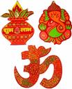 Dms Retail 17.78 cm Multicolor Printed Wooden Ganesh Om Kalash Sticker for Wall Decoration Diwali Decoration Items for Home Big Size 7 Inches Non-Reusable Sticker (Pack of 3)
