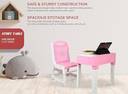 Owing to its durable plastic material, this study table and chair set is built to last through the wear and tear of daily use. The plastic is both lightweight and sturdy, making it easy to move around while offering a solid, long-lasting construction that can withstand daily activities in a child's room. Its strong yet lightweight design ensures it remains stable and secure, providing reliable support for your child as they study, read, or engage in other activities.