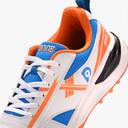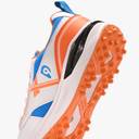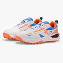 Step onto the cricket field with confidence in these DNINE Blaster cricket shoes. Featuring a striking combination of sun orange, diva blue, and white, these shoes are designed for optimal performance on the pitch. The rubber studs provide excellent grip and traction, essential for quick movements during batting, bowling, and fielding. The breathable mesh panels and comfortable padding ensure your feet stay cool during intense matches. The durable synthetic upper offers both flexibility and support, while the robust sole construction promises lasting performance. A cushioned midsole absorbs impact, reducing strain during long playing hours. The stylish design incorporates modern aesthetics with practical functionality, making these shoes perfect for both practice sessions and match days. The lace-up closure ensures a secure fit, while the padded collar adds extra comfort and stability. These cricket shoes are ideal for players seeking reliable footwear that combines performance, durability, and style on the cricket ground.