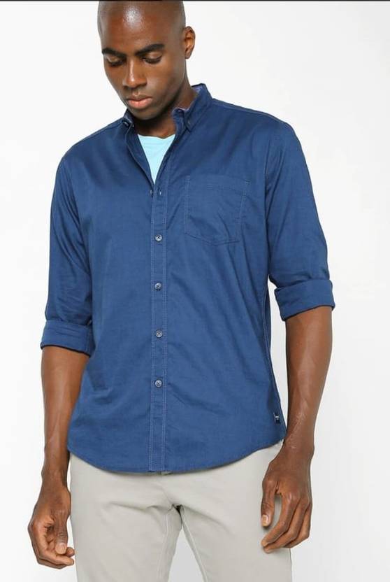 Men Slim Fit BLUE Spread Collar Casual Shirt