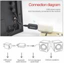 INSTRUCTIONS FOR USE: Insert the receiver into the speaker's USB interface, and the other end connected with the 3.5mm audio cable to the receiver and the aux interface of speakers. Open the Bluetooth-enabled mobile phone (or computer), and search the surrounding Bluetooth devices to find a device called find its pairing code is 0000, after the pairing is successful, the LED light will slow down. Then you can select the music via Bluetooth from a cell phone or computer, a great music will play from speaker.