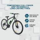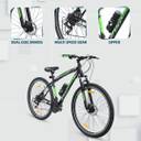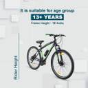 - Frame Set - Frame: 18 Inch Hi-Tensile Steel - TIG Welded, Front Fork: Suspension, Decals Type: Water Transfers, DRIVE TRAIN - Bottom Bracket Set: Sealed Cartridge High-Precision Bearings, Pedals: Anti-Skid Plastic with Reflector, Shifting & Derailleur: No Hassle Single Speed, Rider Height:5.7-6.3 Feet, Age Group:12+ Years, WHEELS - Rim: Double Wall Rustfree Alloy, Tyres: Nylon Grip 29", COMPONENTS - Handle Bar: Mountain Bike Style, Front Brake: Disc Brakes, Rear Break: Mechanical Disc Brakes, Seat Post: Steel, Saddle: Premium Seat with Quick Release, Accessories - Mudguard: No, Carrier: No, Side Stand: Yes, Front Reflector: Yes, Rear Reflector: Yes, Freebies with this Cycle : Water Bottle, Reflectors, Side stand, Tool Kit. FREE HOME INSTALLATION. TOLL FREE -7743005248