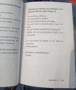 The book's format is appreciated, allowing for random page reading without losing context.