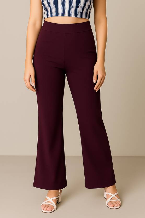 Dusty Purple women's high waist bell bottom trousers crafted from premium polyester blend. Comfortable, wrinkle-resistant and perfect for office wear, casual outings, and travel. women's formal trousers, high waist pants, office wear trousers, trousers, casual pants women, wide leg trousers, ladies office pants, work trousers women, elegant pants, professional trousers, girls pants, slim-fit trousers, cotton polyester pants, trendy trousers, party pants girls.