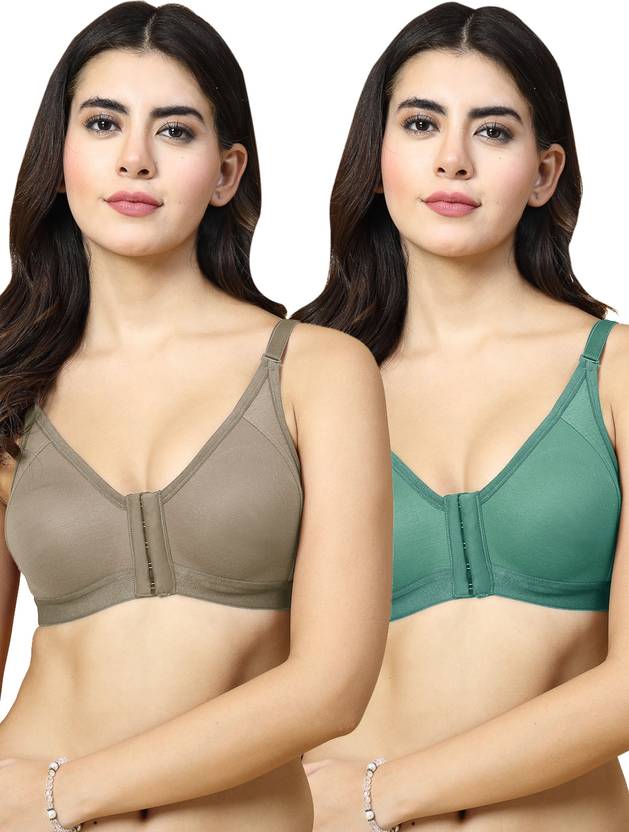 This Brown, Pista Green color pack of 2, Non-padded and non-wired t-shirt bra can be used for everyday wear under t-shirts and tops to kurtas and shirts. The seamless cups provide for a smooth finish with no shows on your outfit and the front open closure and brushed back hook & eye provides for extra comfort.