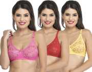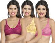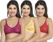 Docare Purple, Pink Full Coverage Non Padded Lace / Net Bra - Pack of 3