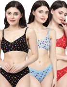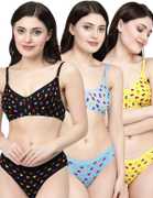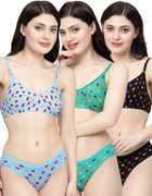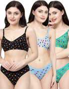 Bra & Panty Set Printed Blue, Green, Black Lingerie Set