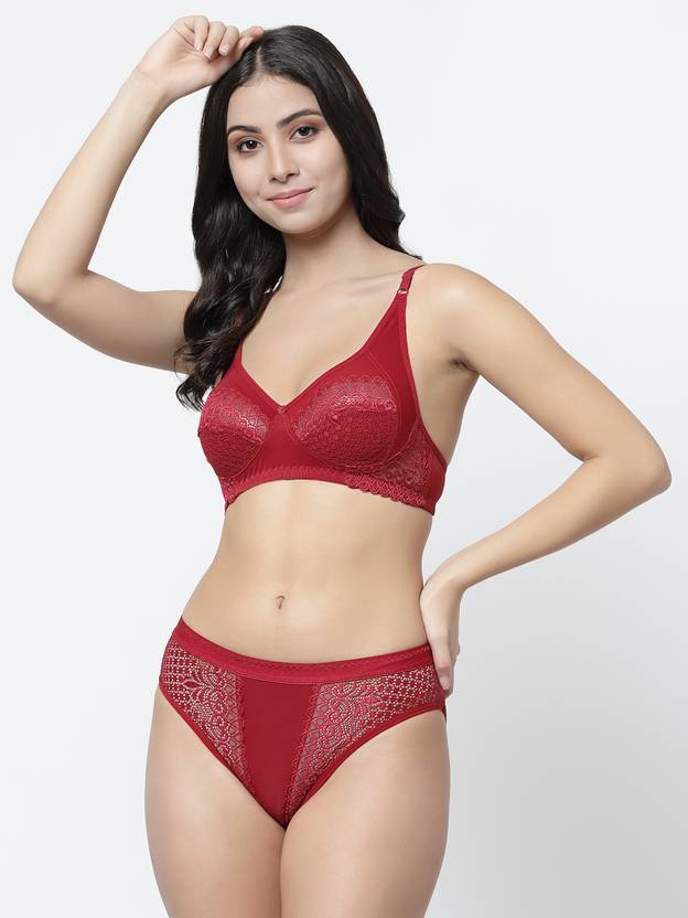 Bra & Panty Set Self Design Maroon Lingerie Set