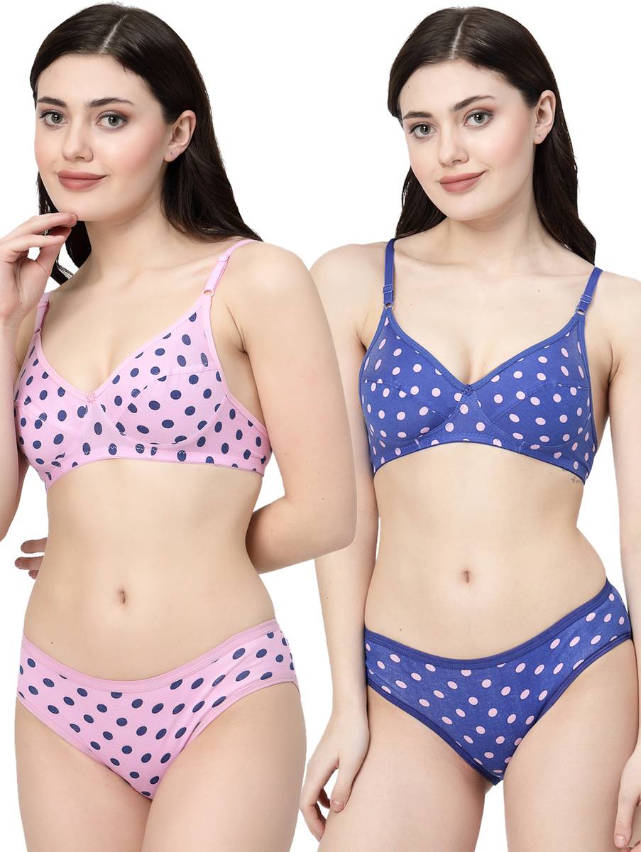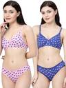 Docare Pink, Royal Blue Polka Print Non Padded Bra & Panty Set