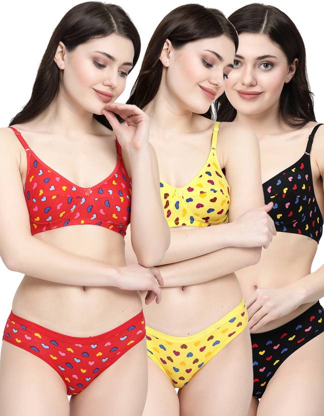 Bra & Panty Set Printed Red, Yellow, Black Lingerie Set
