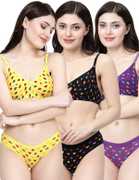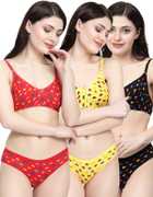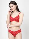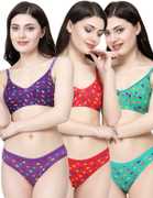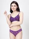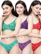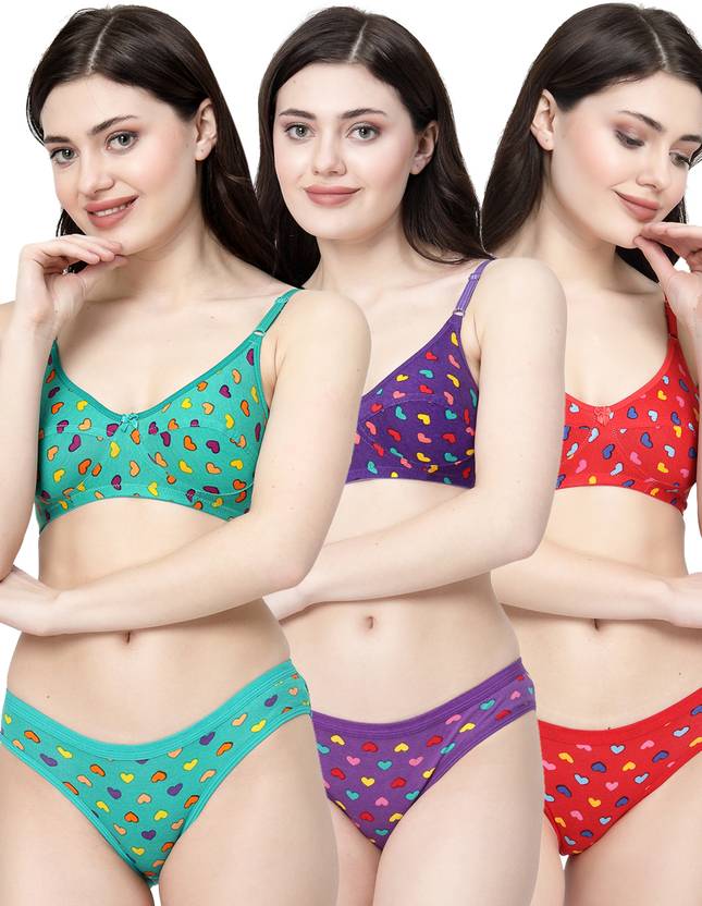 Bra & Panty Set Printed Green, Purple, Red Lingerie Set