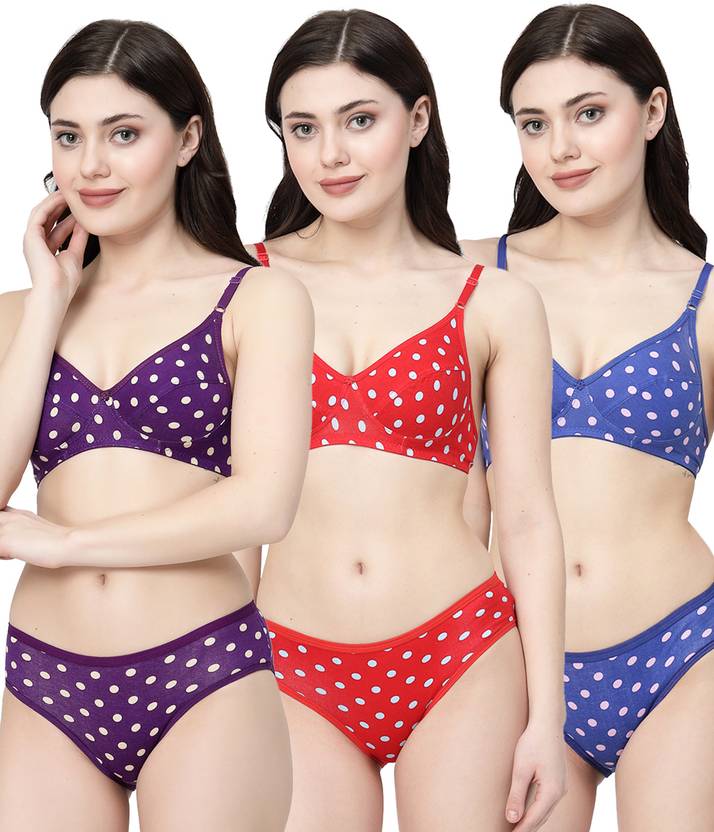 Bra & Panty Set Polka Print Purple, Red, Dark Blue Lingerie Set
