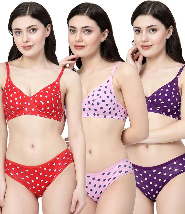 Docare Red, Pink, Purple Polka Print Non Padded Bra & Panty Set