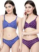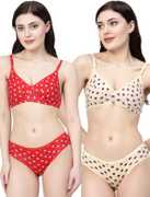 Docare Red, Pink Polka Print Non Padded Bra & Panty Set