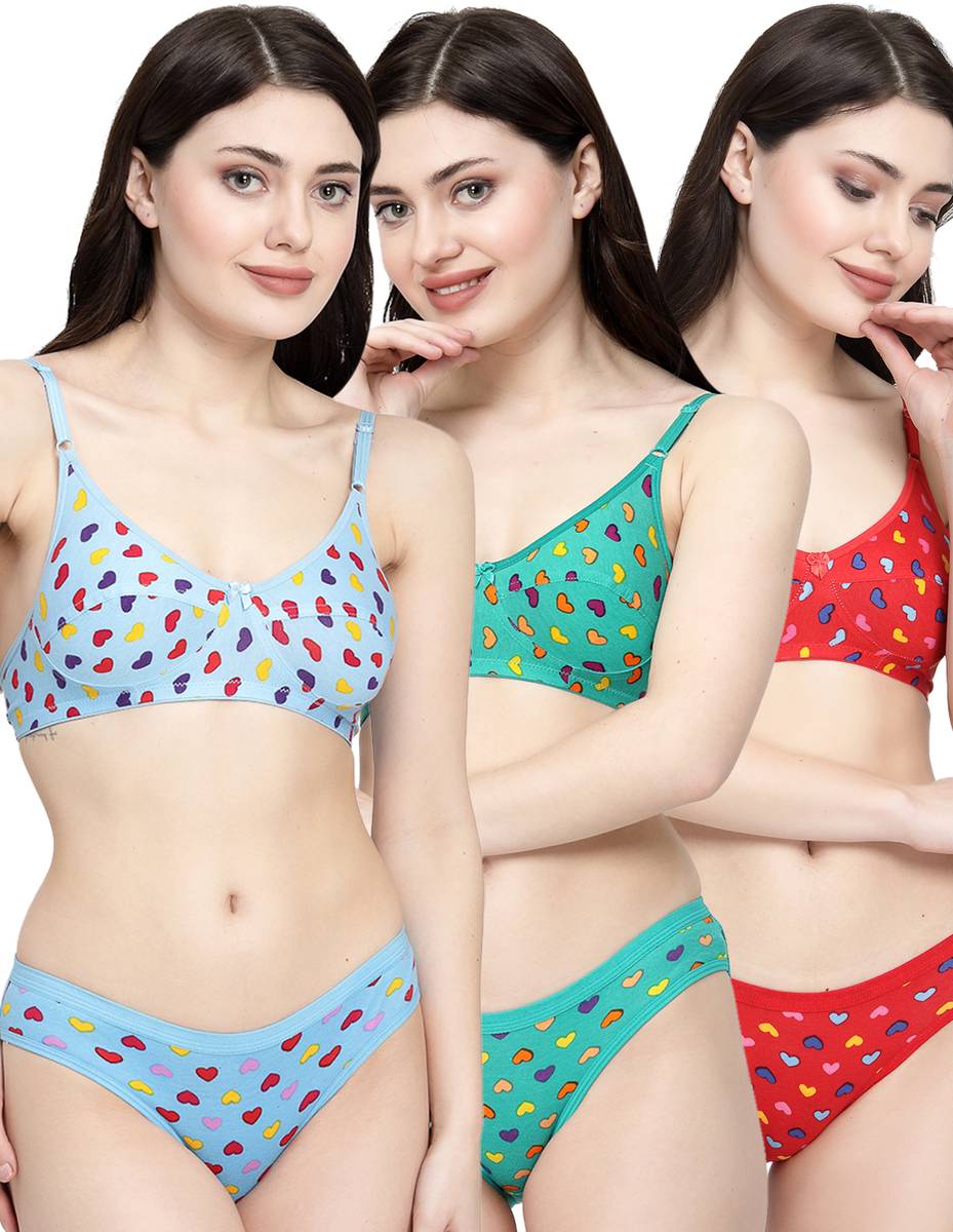 Bra & Panty Set Printed Blue, Green, Red Lingerie Set