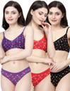 Bra & Panty Set Printed Purple, Red, Black Lingerie Set