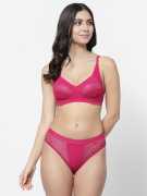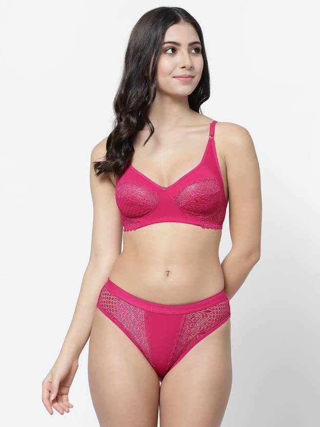 Bra & Panty Set Self Design Pink Lingerie Set