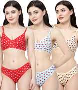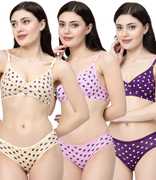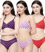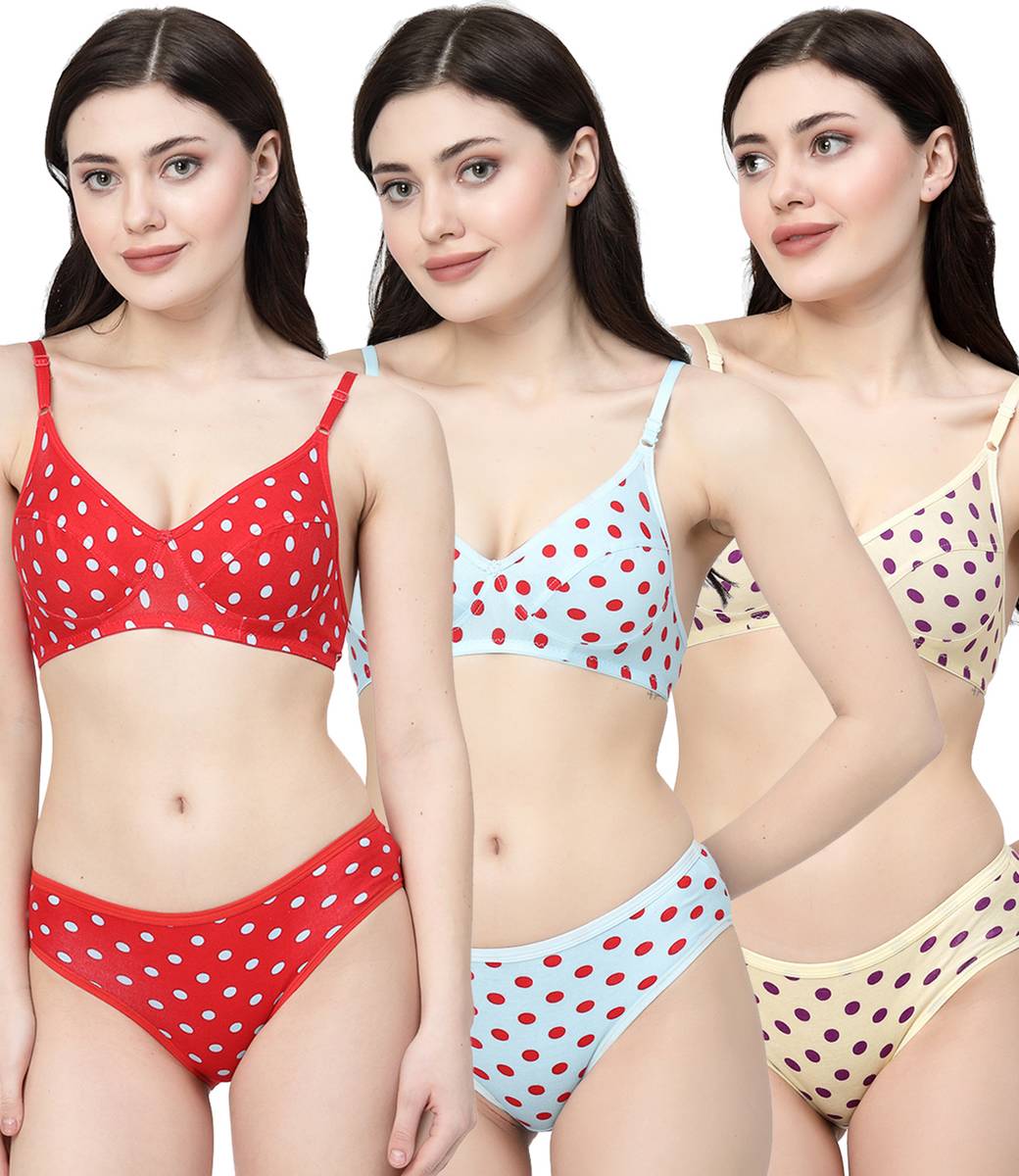 Bra & Panty Set Polka Print Multicolor Lingerie Set