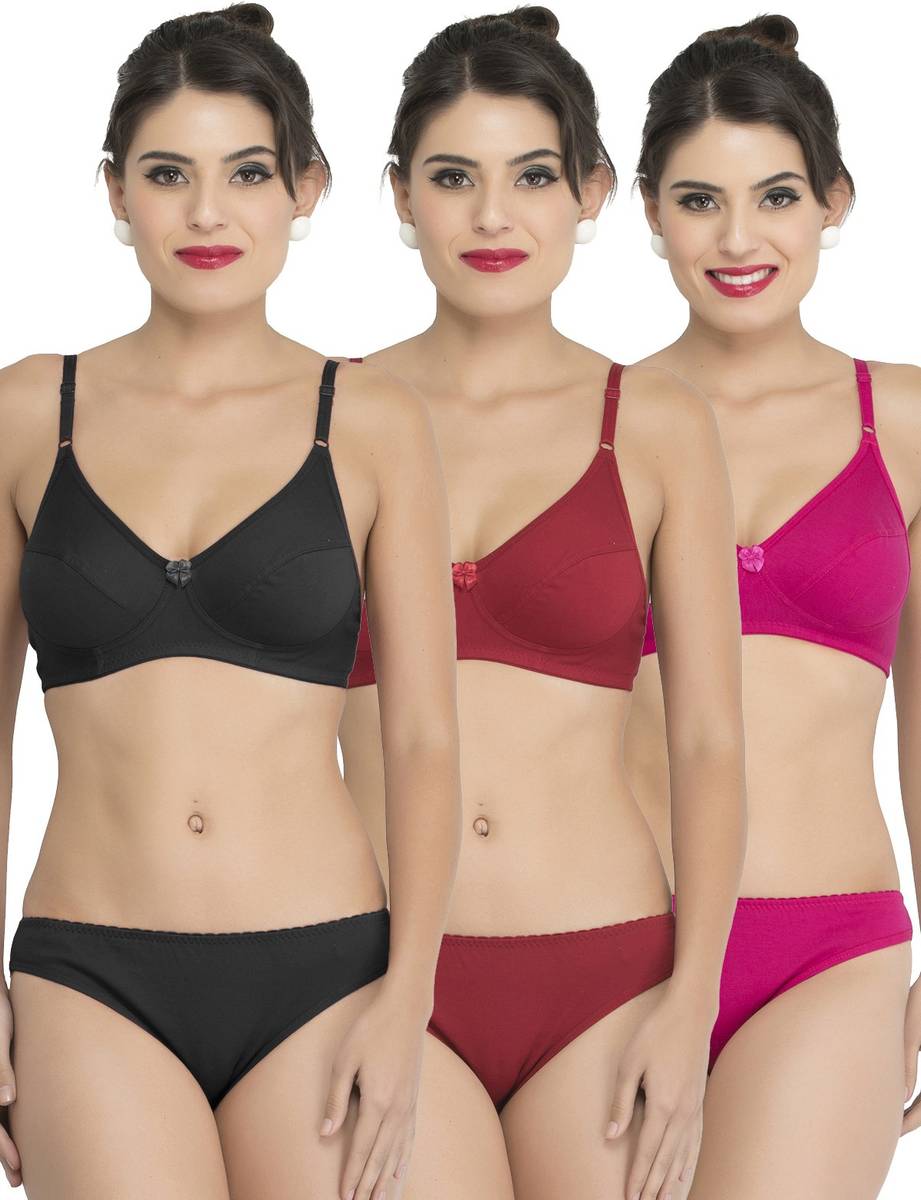 Docare Bra & Panty Set Solid Maroon, Black, Pink Lingerie Set