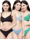Bra & Panty Set Printed Black, Blue, Green Lingerie Set