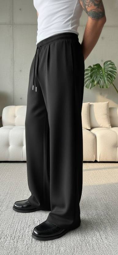 Dockstreet Solid Men Black Track Pants