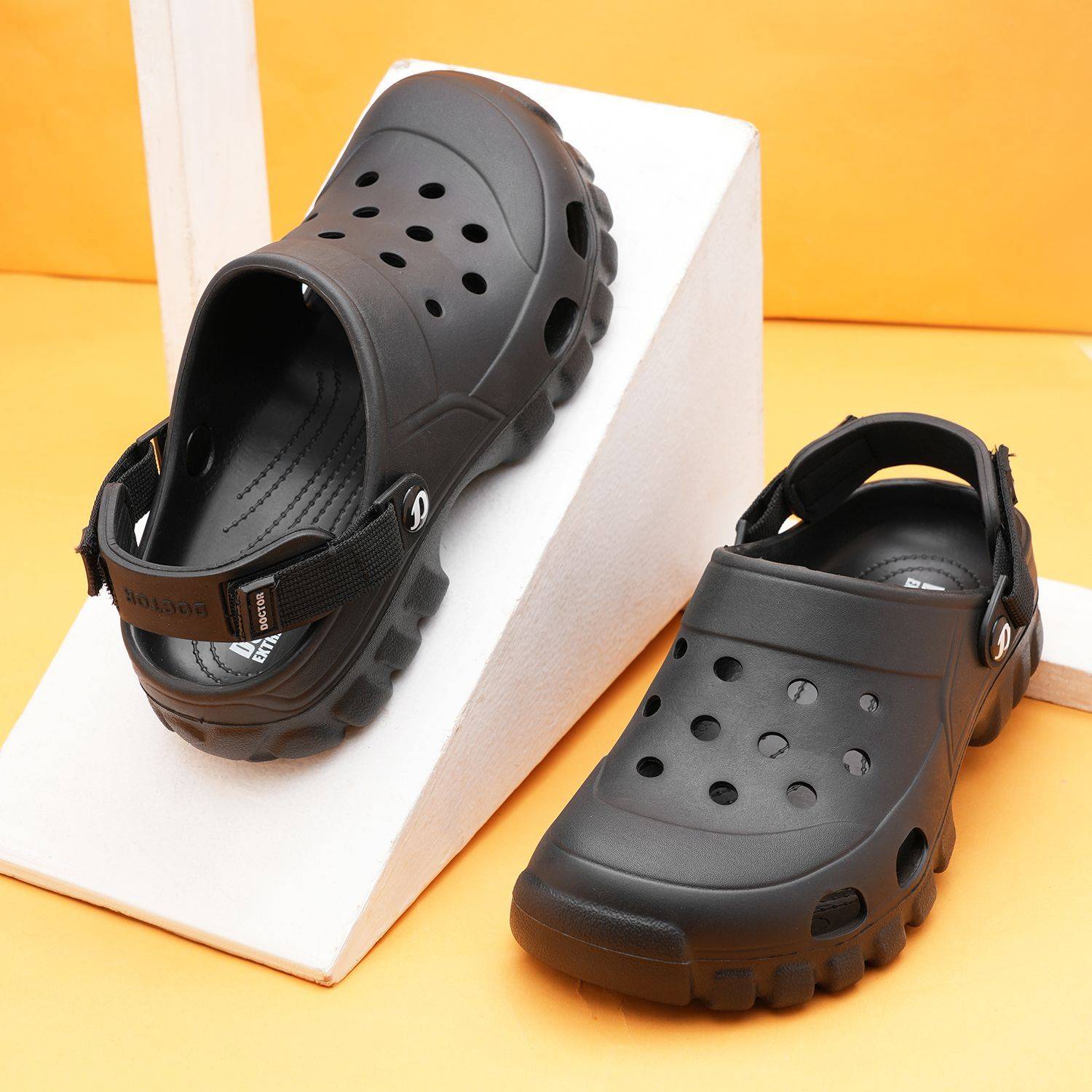 Add these wonderful Doctor Extra Soft Classic Casual Sports Clogs For Men to your Shoe Closet. Brought to you by FAMILY FOOTWEAR, these Clogs/ Sandals are not only Light Weight, Durable, and Anti Skid but also extremely Comfortable to wear. Now, you can now keep your feet comfortable with this pair of Doctor Extra Soft Footwear for Men that have been skillfully crafted to provide optimum support to your ailing Feet. A pair of these molded clogs are perfect for all outdoor activities, whether you are walking around a campsite, gardening at home, or indulging in some high-intensity sports. Our Clogs/ Sandals are also the ideal footwear for summer holidays, days beside the water, or in the garden. Their lightweight design makes it perfect to pack into your suitcase, beach bag, gym bag, or water sports kit. These shoes will provide comfort and practicality, keeping your feet cool on a hot day with the air holes molded into the shoe. These Sandals have an adjustable back strap that can be worn either at the front or rear of the ankle. The design of these clogs is simple and classic, with a slip-on style that makes them easy to wear and remove. These classic sporty clogs are made with water-resistant material, making these clogs perfect for wear in wet or damp conditions. Classic Clogs are not only the most comfortable shoes for men but also easy to clean by just using soap and water and allowing for a quick dry.