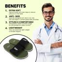 These Doctor Extra Soft daily-use lightweight flip-flops for men are excellent for strength conditioning, as their flexibility allows your feet to get a workout by moving more naturally than conventional or thicker-soled slippers. Lightweight, flexible slippers put 7% to 15% less stress on the knee than less flexible slippers with higher heels. Flexibility helps with performance, posture, promotes efficient movement, and prevents incorrect body alignment.