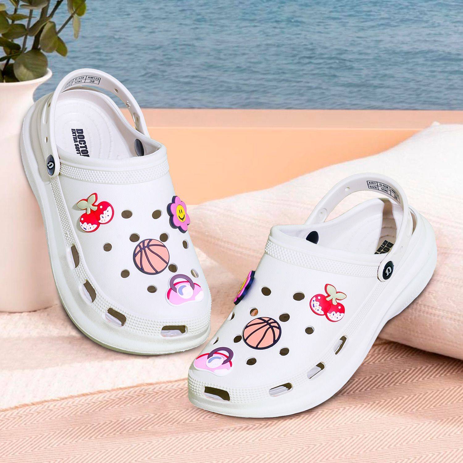 Add these wonderful Doctor Extra Soft Premium Extra Comfortable Clogs/Sandals with Cute Charms & Adjustable Back Strap for Adult to your Shoe Closet. Brought to you by FAMILY FOOTWEAR, these Clogs/ Sandals are not only lightweight, Durable, and anti-skid but also extremely Comfortable to wear. Now, you can keep your feet comfortable with this pair of Doctor Extra Soft Footwear for Women that have been skillfully crafted to provide optimum support to your ailing Feet. A pair of these molded premium clogs are perfect for all outdoor activities, whether walking around a campsite, gardening at home, or indulging in high-intensity sports. Our Clogs/ Sandals are also the ideal footwear for summer holidays, days beside the water, or in the garden. Their lightweight design makes it perfect to pack into your suitcase, beach bag, gym bag, or water sports kit. These shoes will provide comfort and practicality, keeping your feet cool on a hot day with the air holes molded into the shoe. These Sandals have an adjustable back strap that can be worn at the ankle's front or rear. The design of these clogs is simple and classic, with a slip-on style that makes them easy to wear and remove. These clogs are made with water-resistant material, making these clogs perfect for wear in wet conditions. Simple and Classic Charms Clogs are the most comfortable shoes for women and are easy to clean by just using soap and water and allowing for a quick dry.