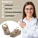These clogs come with adjustable straps, allowing for a secure and customisable fit for every wearer. You can easily modify the fit to your preference, ensuring that the clogs stay in place during any activity. Whether you like a looser or tighter fit, the adjustable straps provide the flexibility to accommodate various foot shapes and sizes. The back strap can be work in front of or on the rear of the ankle. This feature enhances comfort, ensures a snug fit, and reduces the chance of discomfort while also providing the stability needed for daily wear. Made with water-resistant materials, these clogs are excellent for wet conditions. They keep your feet dry and comfortable in rainy weather or near water. The water-resistant feature prevents water from soaking into the shoe, ensuring your feet stay protected and dry. Whether you are walking through puddles or enjoying a day at the beach, these clogs offer reliable performance in damp conditions. The quick-drying nature of the materials ensures that they are ready for continued use after exposure to water, adding to their convenience. The colors of the charms shown in the photo may be different from the colors of the charms in the product you receive.