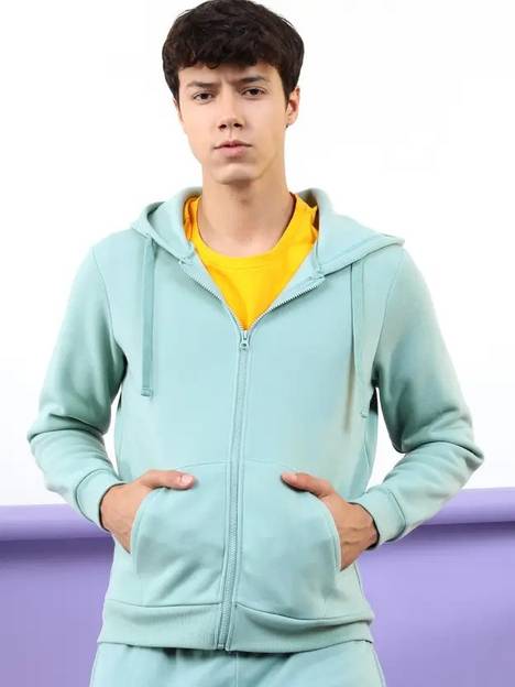 Designed for comfort and functionality, this hoodie features a soft, breathable cotton fleece blend that keeps you warm without weighing you down. The open front zipper design makes it easy to layer, while two roomy kangaroo pockets provide convenient storage and a casual look. Full-length sleeves with ribbed cuffs and a matching ribbed hem offer a snug fit and help lock in warmth. Perfect for cool-weather lounging, workouts, or everyday wear.