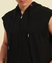 This men's hooded sleeveless zipper jacket is the perfect blend of comfort and style. Crafted from soft and breathable pure cotton terry fabric, it offers a cozy feel against the skin while ensuring durability. Featuring two convenient kangaroo pockets, it provides ample storage space for your essentials or a place to keep your hands relax. The sleeveless design offers a relaxed fit, ideal for layering or staying cool in warmer weather, while the adjustable hood adds an extra touch of versatility. Whether you're running errands or relaxing at home, this jacket brings both functionality and a modern, sporty look.
