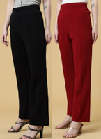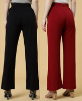 Doil Domec Regular Fit Women Black, Maroon Trousers