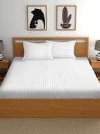 Dokarn Cotton King Flat 181 TC Striped Bedsheet (Pack of 1, Blue)