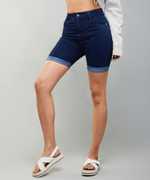 DOLCE CRUDO Solid Women Denim Dark Blue Denim Shorts