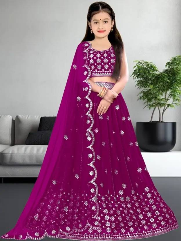 DOLFINFASHION Girls Lehenga Choli Ethnic Wear Embellished Lehenga, Choli and Dupatta Set (Purple, Pack of 1)