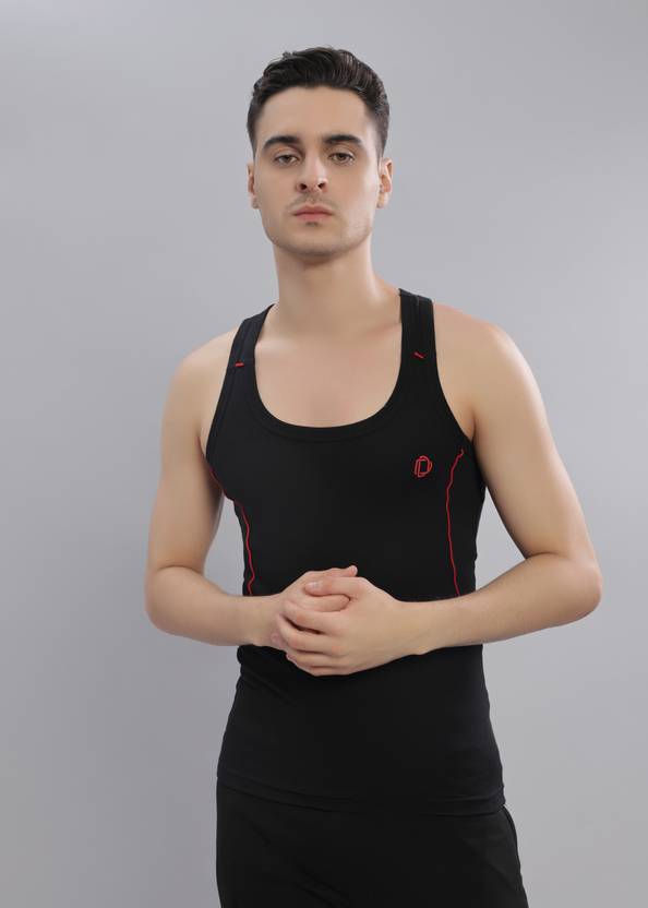 Modernize your innerwear collection by adding this stylish and premium quality gym vest from Dollar Bigboss. Designed to fit men's active lifestyles, which include both work and exercise. The soft fabric will keep you at ease all day long and ensures a flawless fit. For an effortlessly cool look, wear it with a workout shorts or a track pant with sports shoes.