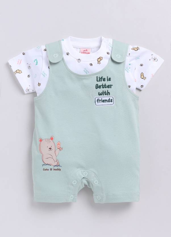 Dollar Dungaree For Baby Boys & Baby Girls Casual Graphic Print Cotton Blend (Green, Pack of 1)