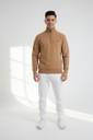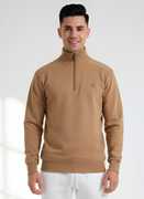 Stay effortlessly stylish with this tan quarter-zip pullover, designed for simple sophistication and daily comfort. Featuring a clean solid color and a subtle emblem on the left chest, this piece is perfect for layering or wearing on its own. Ideal for casual outings, leisurely weekends, or modern office wear.