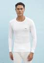 Premium combed cotton, Rich brushed interlock fabric, Snug, tailored fit, Spandex ribbed cuffs prevent riding up, Blind reinforced seams, Shields from chilly weather, Low neck design