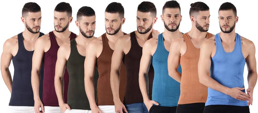 Dollar Lehar Men Combed Cotton Round Neck Vest -Pack of 8- Colour may Vary