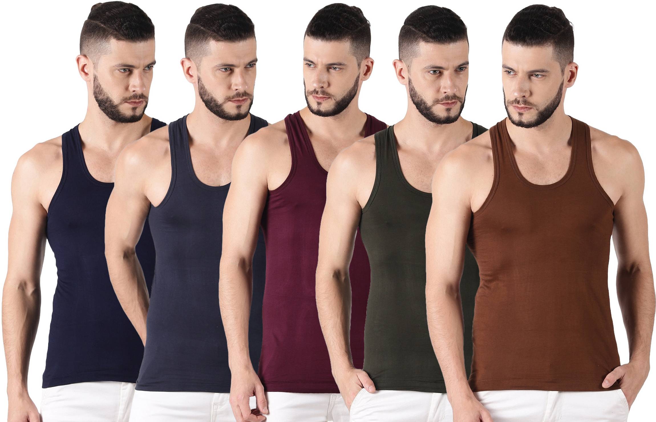 Dollar Lehar Men Combed Cotton Round Neck Vest -Pack of 5- Colour may Vary