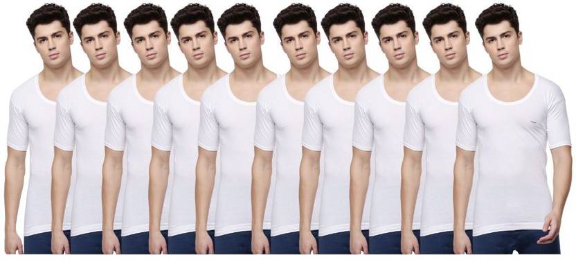 Dollar Lehar Men Combed Cotton Round Neck With Sleeve Vest -Pack of 10- White