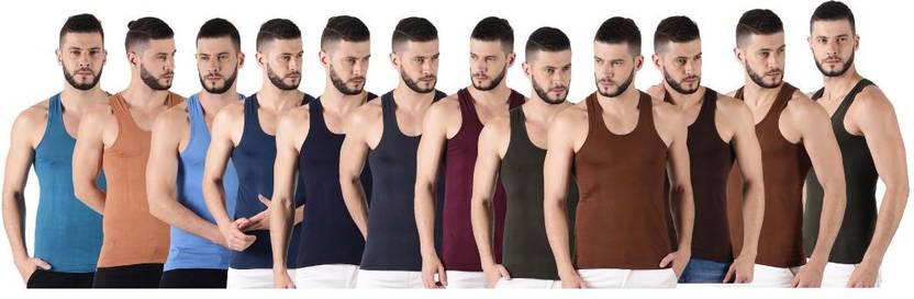 Dollar Lehar Men Combed Cotton Round Neck Vest -Pack of 12- Colour may Vary