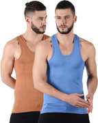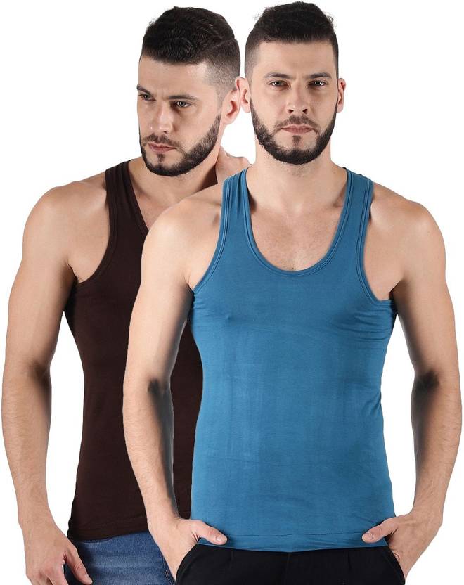 Dollar Lehar Men Combed Cotton Round Neck Vest -Pack of 2- Colour may Vary